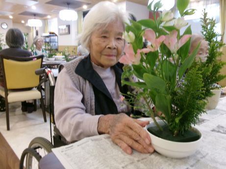 先日、当施設ではフラワーアレンジメントのレクリエーションを開催いたしました。