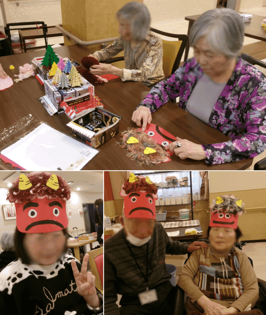 先日、当施設ではアートレクリエーションの一環として、鬼のお面作りを行いました。